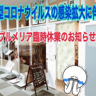 日頃よりスパサロン プルメリアをご利用頂き誠にありがとうございます。 この度、新型コロナウイルスの感染が急速拡大していることを受け、急遽、メ...