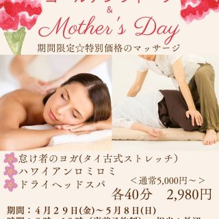 【GW・母の日】期間限定特別価格コースのご案内☆4/29(金)~5/8(日)
