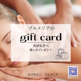 大切な方へ癒しのプレゼント♪ プルメリアのギフトカード♫お客様からとても喜ばれています。 皆様の大切な方を真心込めて丁寧に施術させて頂いてお...
