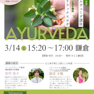 お知らせ 2026年3月7日 by happydreame · Published 2026年3月7日 【残り2席】3/14(土)開催!「アーユルヴェーダ講座 × リラックスヨガ」 鎌倉 心と体を整える【アーユルヴェーダ × リラックスヨガ × チャイ作り体験】スペシャルイベント開催! 🌿3/14 アーユルヴェーダ×リラックス...