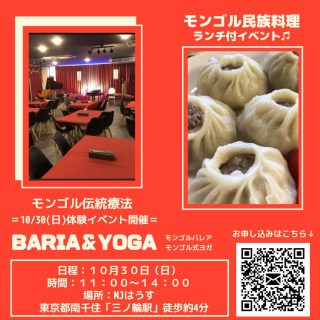 10月30日(日)に行いました、モンゴル伝統療法モンゴルヨガ&モンゴルバレアセラピーの体験イベント お忙しい中ご参加下さった皆様、あ...